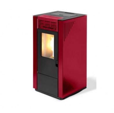 Stufa a pellet Nuova 7,4 kW, volume riscaldabile 170 m³, resa > 91 %, Ø fumi 80 mm posteriore, programmabile, capacità serbatoio 13 kg, 470x476xh899 mm, rivestimento acciaio, colore bordeaux.