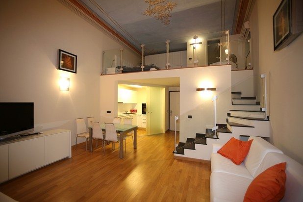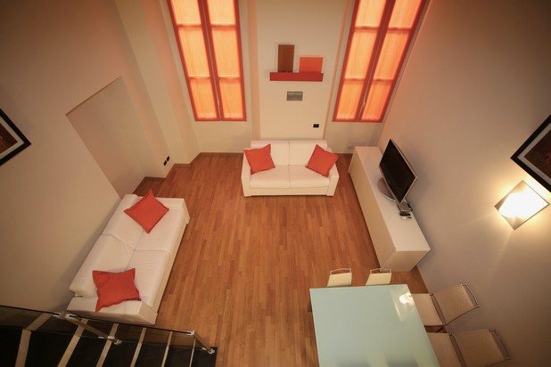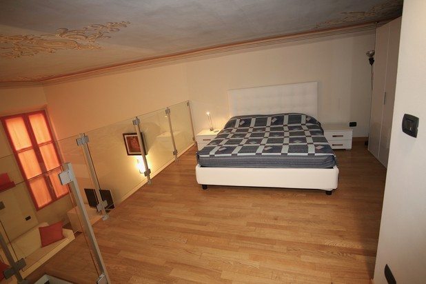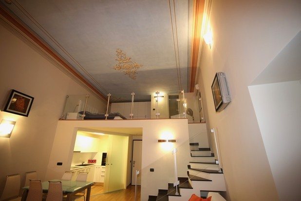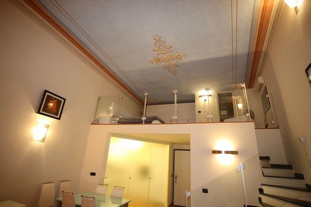 L’alloggio è elegantemente arredato in stile moderno contrapposto ai raffinati soffitti affrescati.