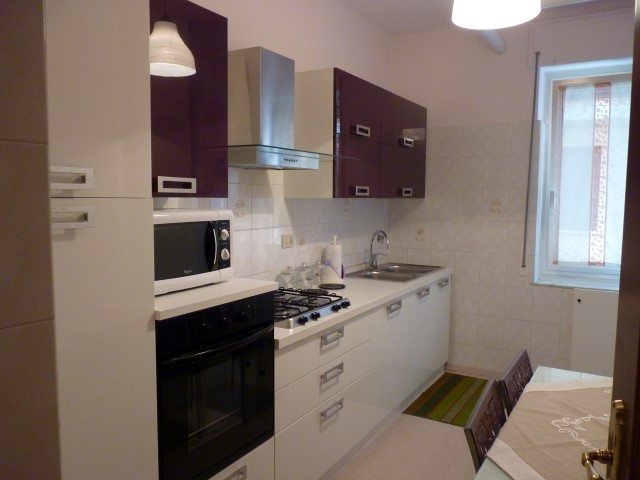 L’alloggio è composto da ingresso su corridoio, soggiorno, cucina separata, due camere matrimoniali, ripostiglio/lavanderia con uscita su balconcino di servizio e bagno finestrato.