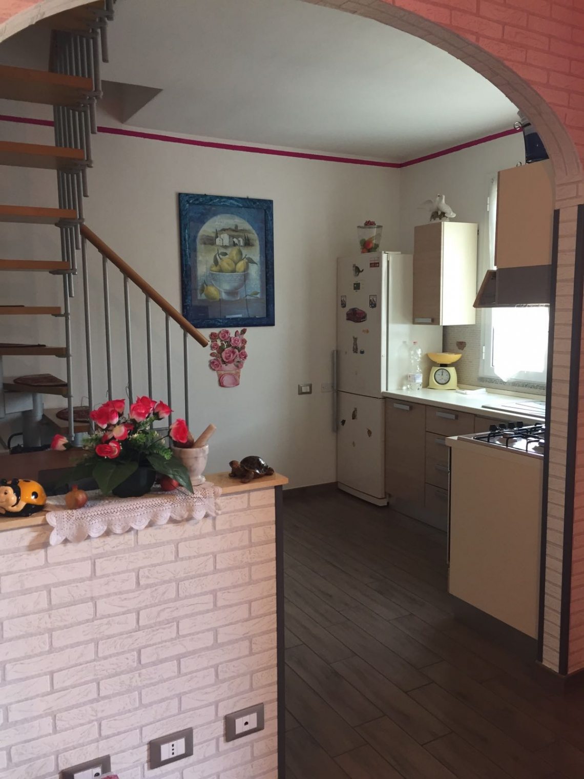 in zona residenziale e comoda a tutti i servizi, costruzione in classe B, splendido alloggio su due livelli così composto: ingresso living su ampio soggiorno e cucina a vista, bagno e ripostiglio, scala che porta al piano superiore dove troviamo 3 camere ed il secondo bagno mansardati.