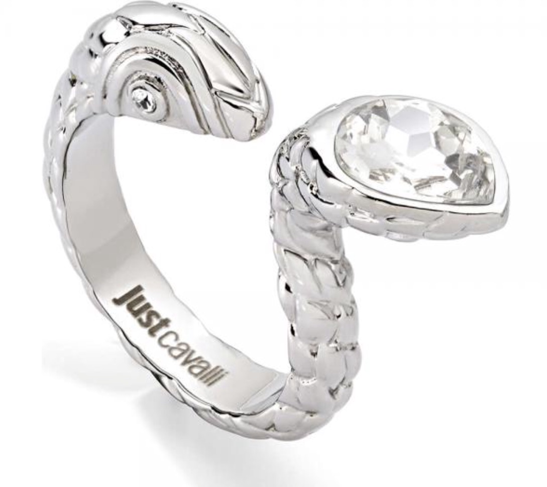 Serpente in acciaio inossidabile con cristallo bianco incastonato. Mis. 14 (circa 5,40 cm diametro).