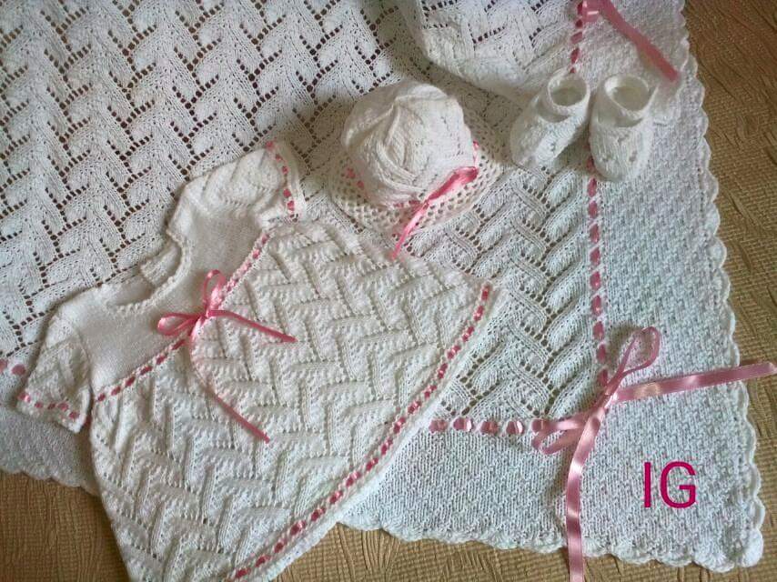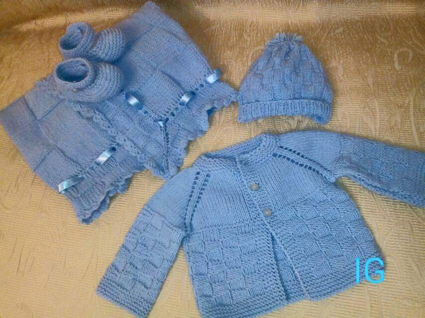 Completo da neonato,lavorato ai ferri a mano,di caldo cotone