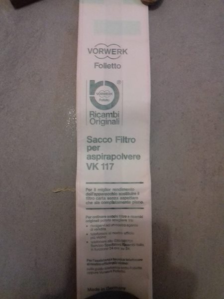 Folletto Worverk per tappeti e moquette ancora smontato e nel suo scatolo, dunque MAI usato. 4 buste di polvere pulente e sacchetti compresi.