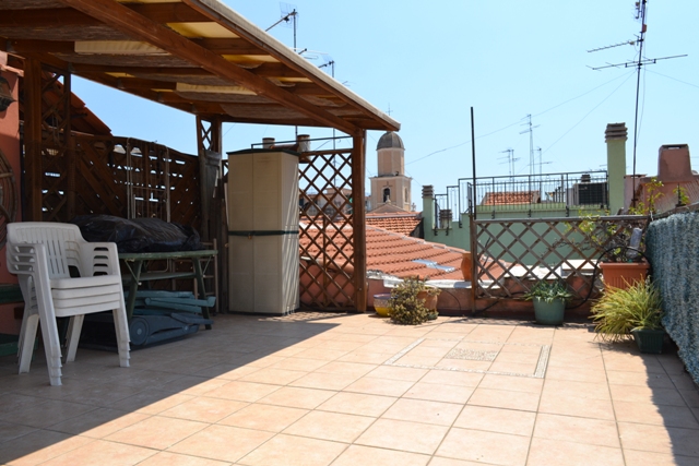 Borghetto S.S. (SV) – Rif. 1145 a soli mt. 200 dal mare, raggiungibile con due sole scale, il particolare appartamento composto da due luminosi locali, soggiorno e camera (oltre a bagno), con la scala interna collegata la terrazza di mq. 42 su due livelli. Panorama aperto, anche con riservatezza. (vendita soggetta ad imposta di registro sul valore catastale)