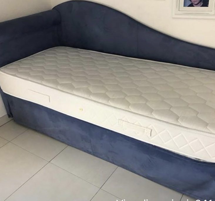 Letto singolo con testiera e lateralie in alcantara (dim. 80 x 190) con letto estraibile. (possibilità di materassi).Ottime condizioni.