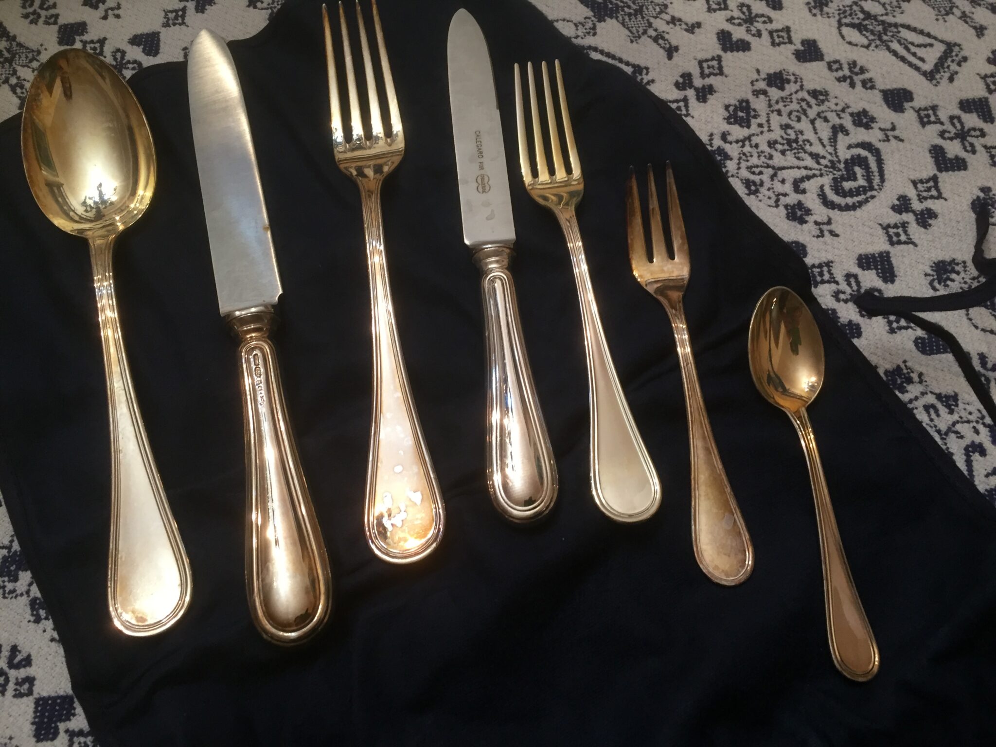 Posate d’argento , Calegaro da 12, per un totale di 84 pz. Ogni gruppo di 7 è con custodia anti ossidazione. E’ un servizio di posate in parte ancora imballato e con garanzia. Vendo per inutilizzo