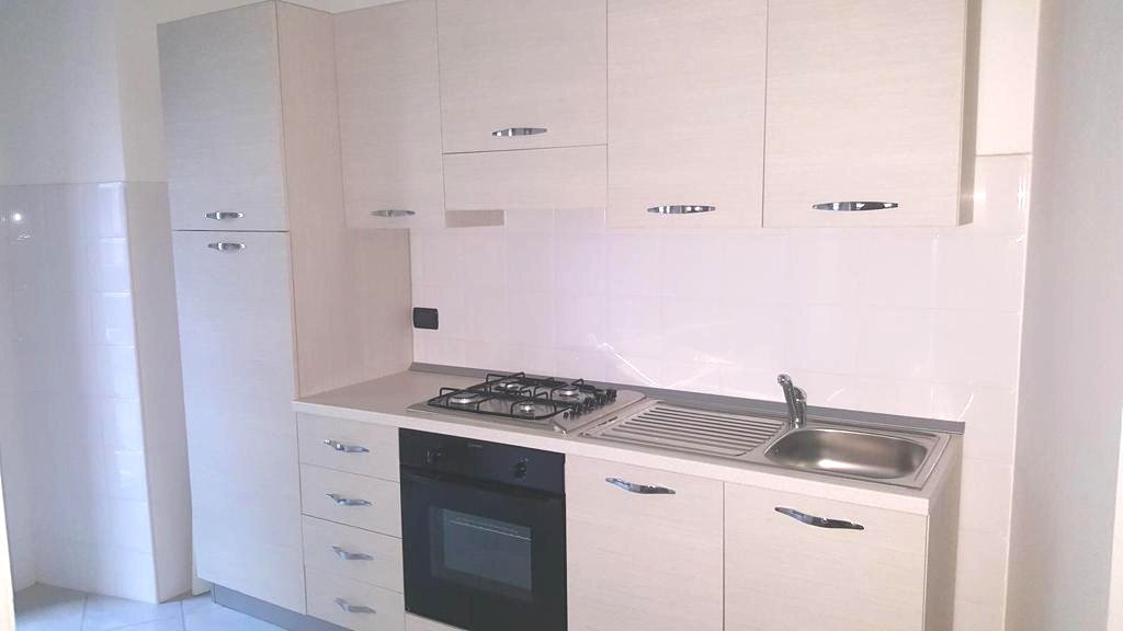 Primo piano con ascensore composto da ingresso su disimpegno, soggiorno zona cucina a vista, camera da letto matrimoniale e bagno completo con finestra.
