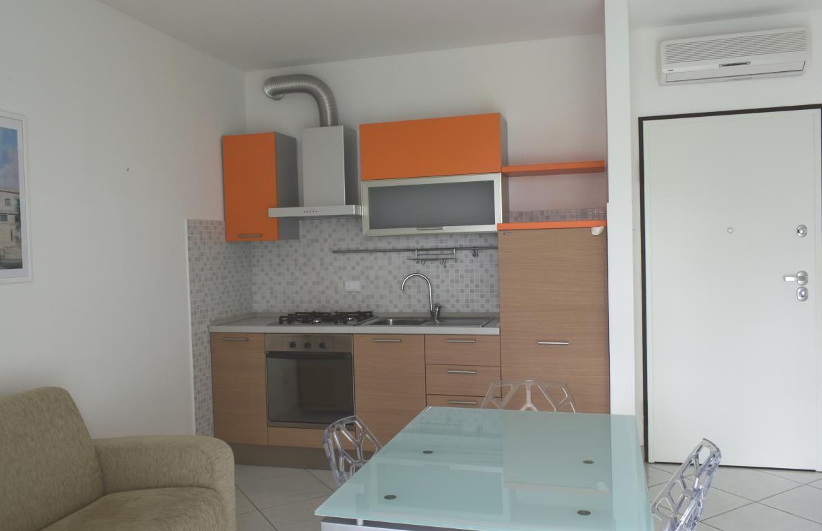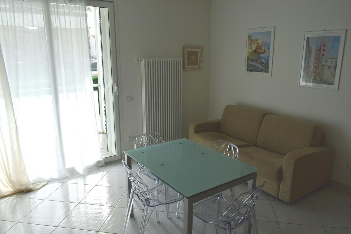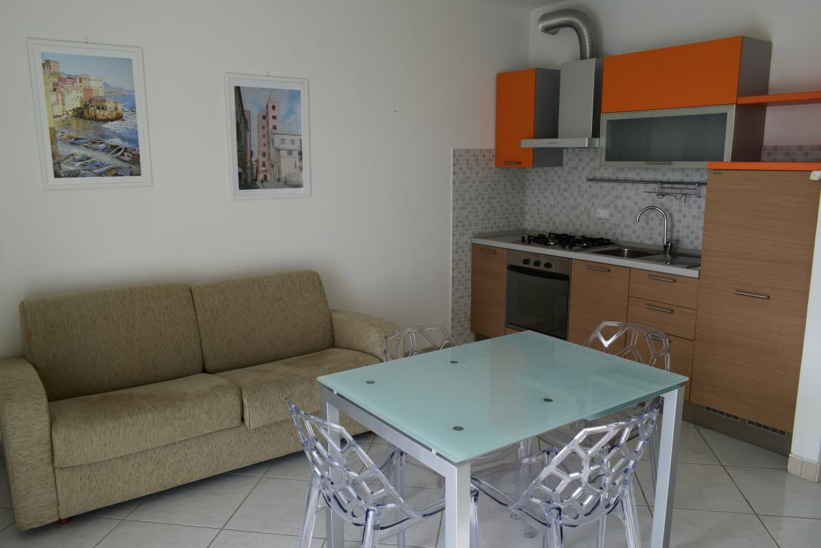 L’appartamento è composto da un ampio soggiorno con angolo cottura, camera da letto, bagno finestrato, ripostiglio e terrazza vivibile dotata di tende da sole.
