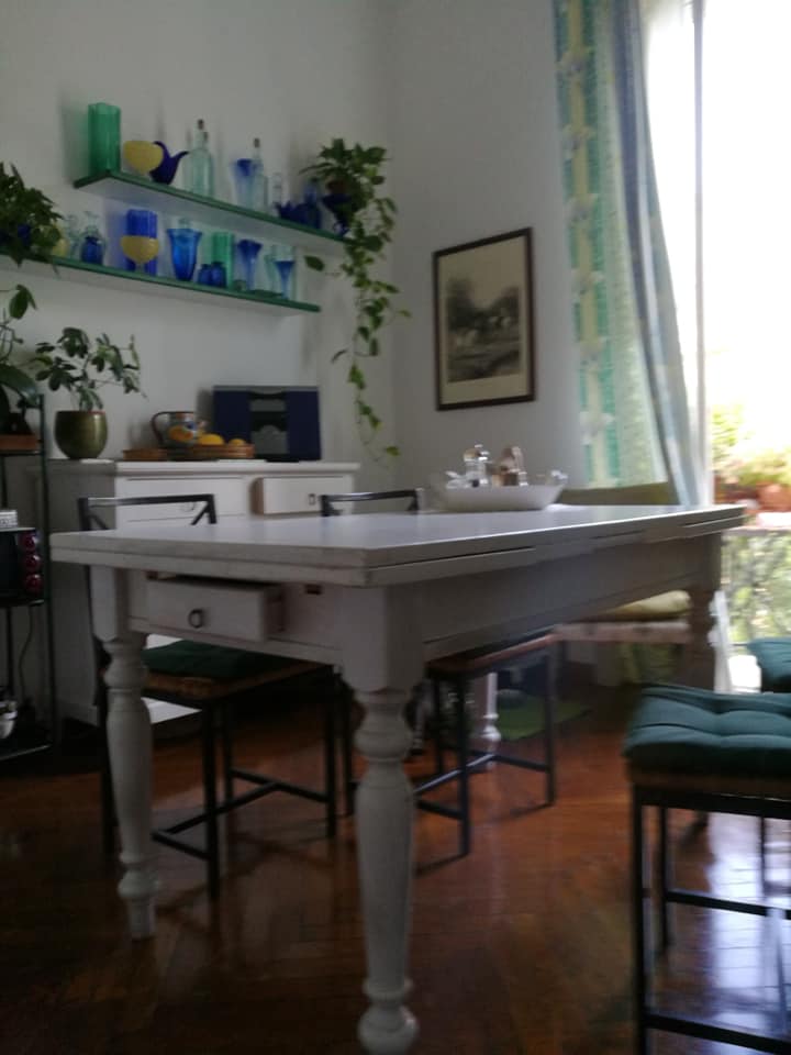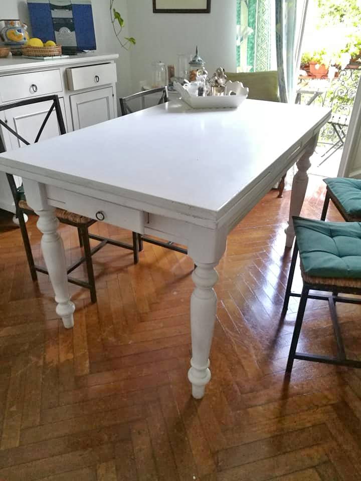 Tavolo 140×80 allungabile 200 con tavola per fare pane, pasta, mattarello e un cassetto. Ottime condizioni…