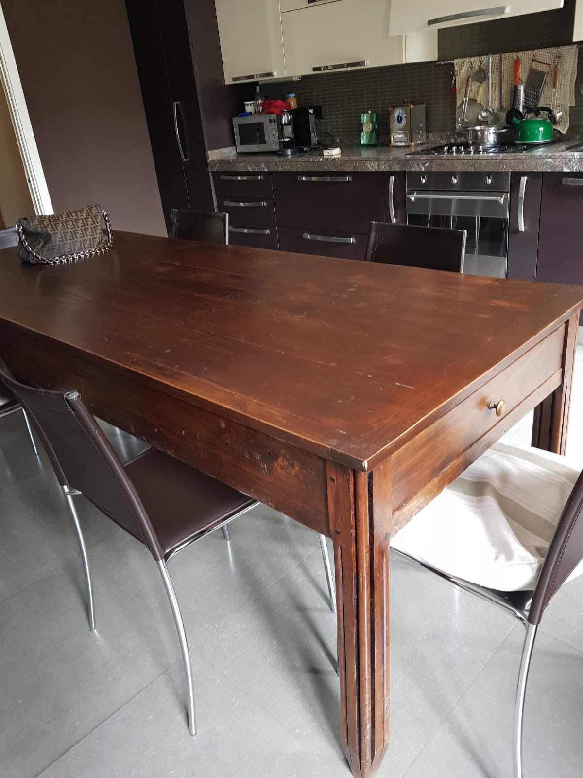 Vendo tavolo da pranzo antico in noce causa trasloco, non ha bisogno di essere restaurato tenuto benissimo. Misura 230x 90 cm.