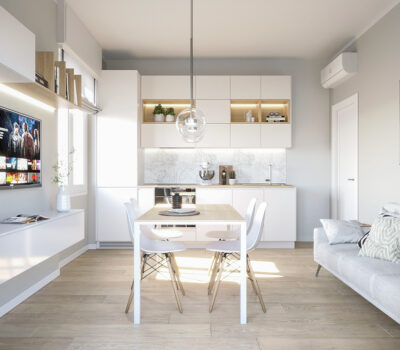 Internamente l’appartamento è composto da ingresso su ampia zona giorno vivibile, due camere da letto, doppi servizi .