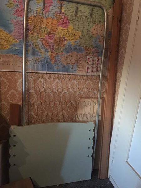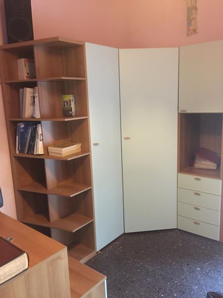Vendo cameretta già smontata solo da ritirare con doppia scrivania, cassettiera, cabina armadio, comodino e testiera letto più rete, in ottime condizioni con inserti in laminato verde acqua…piccoli accessori in regalo come porta dvd, mensole e supporto rotolo da disegno a muro…..