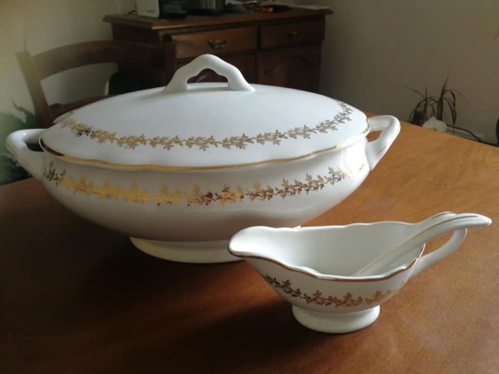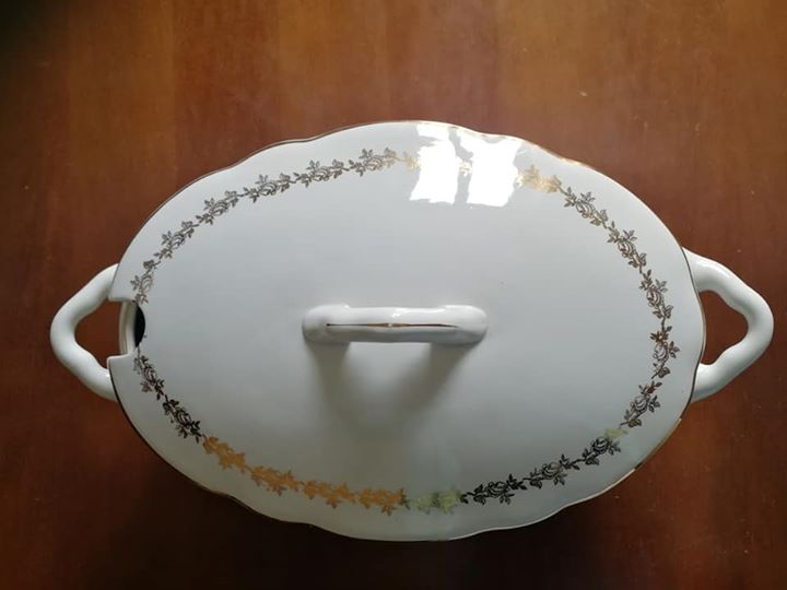 Zuppiera S Richard Made in Italy con disegni in oro . Dimensione massima zuppiera 40×22 cm.