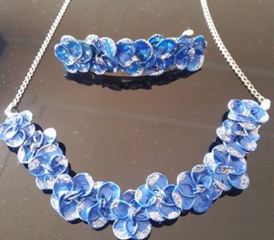 Collana + fermaglio tutto lavorato a mano con fiori dipinti a mano
