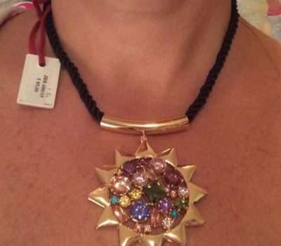 Bellissimo girocollo marca BRACCIALINI modello Sole In tessuto e metallo, ciondolo a forma di sole Impreziosito da cristalli colorati. Chiusura con fibbia di sicurezza. Lunghezza cm 42,5. Bello e luminoso, completo di sacchetto in velluto logato.
