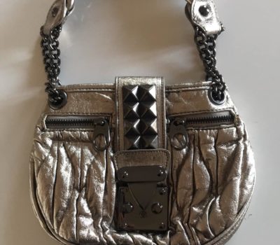 Bellissima borsa gioiello da sera con manico intrecciato colore platino metallizzato usata pochissimo