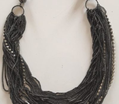 Bellissima collana lunghezza a scelta grazie alla catenina e al morsetto posizionabili, metallo brunito e strass! Luminosa e in perfette condizioni!