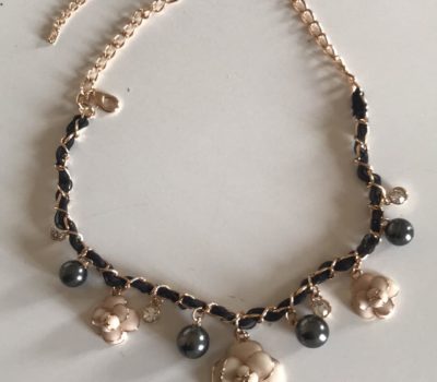 Superba collana con camelie smaltate e catena con raso nero! Elegantissima Lunghezza modificabile Mai usata